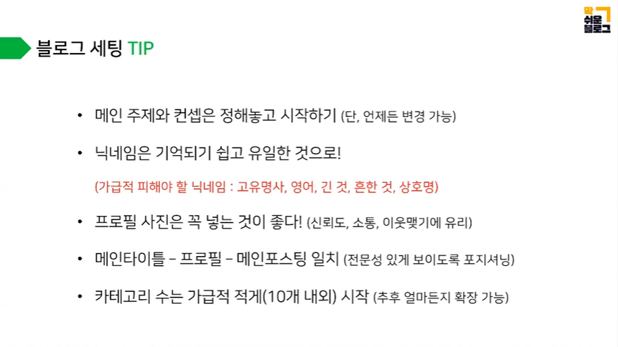 블로그 세팅하는 팁, 글감 무한정 뽑아내는 방법, 글쓰기 올릴 때 유사문서에 걸리지 않는 방법 등